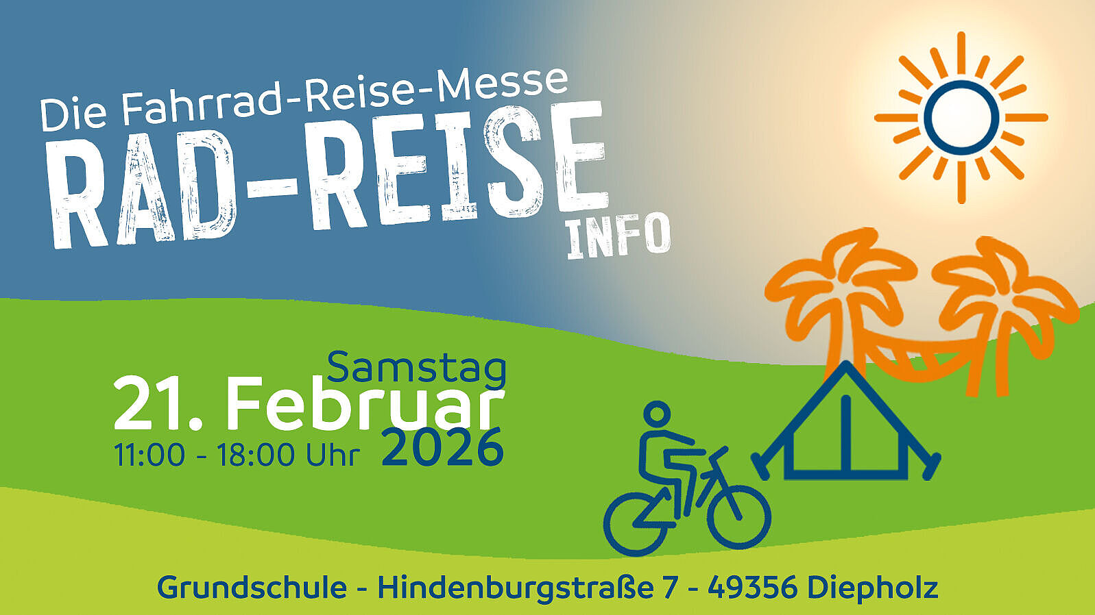 Am Sa. 21.02.2026 lädt der ADFC Diepholz zur RAD-REISE Info 2026 ein. Dann werden die Räume einer Grundschule in Diepholz zum Mekka vieler Radfahrenden weit über die Grenzen des Landkreises hinaus.
